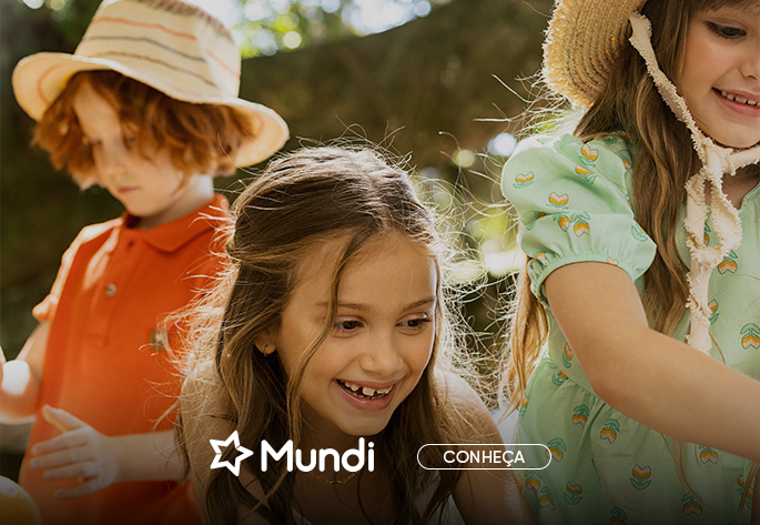 A Mundi é feita para crianças modernas e autênticas que nasceram para brilhar! Muita referência do universo fashion para vestir de atitude crianças criativas e talentosas! A diversidade nos produtos começa na linha Mundi Baby com os tamanhos P, M e G e continua com Mundi dos tamanhos 1 ao 14.